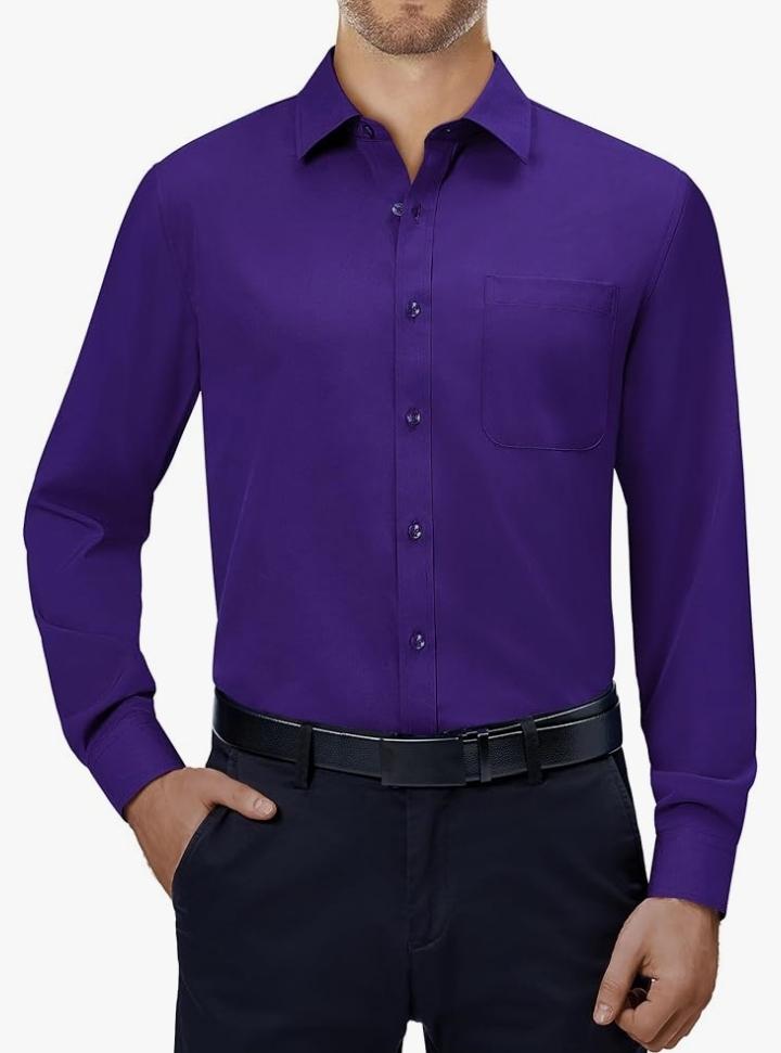 This Classy Purple Button Down Formal,Long sleeve,Lightweight,regular fit,Button down business shirts with collar and solid shirts. Occasion:Men's casual business solid button shirt suitable for all occasions and seasons like holiday, brithday, beach, Casual, Informal Business, Work, Vacation, Date, Wedding and Travel, Classsic shirts for men will make you feel handsome and elegant when you wear it.